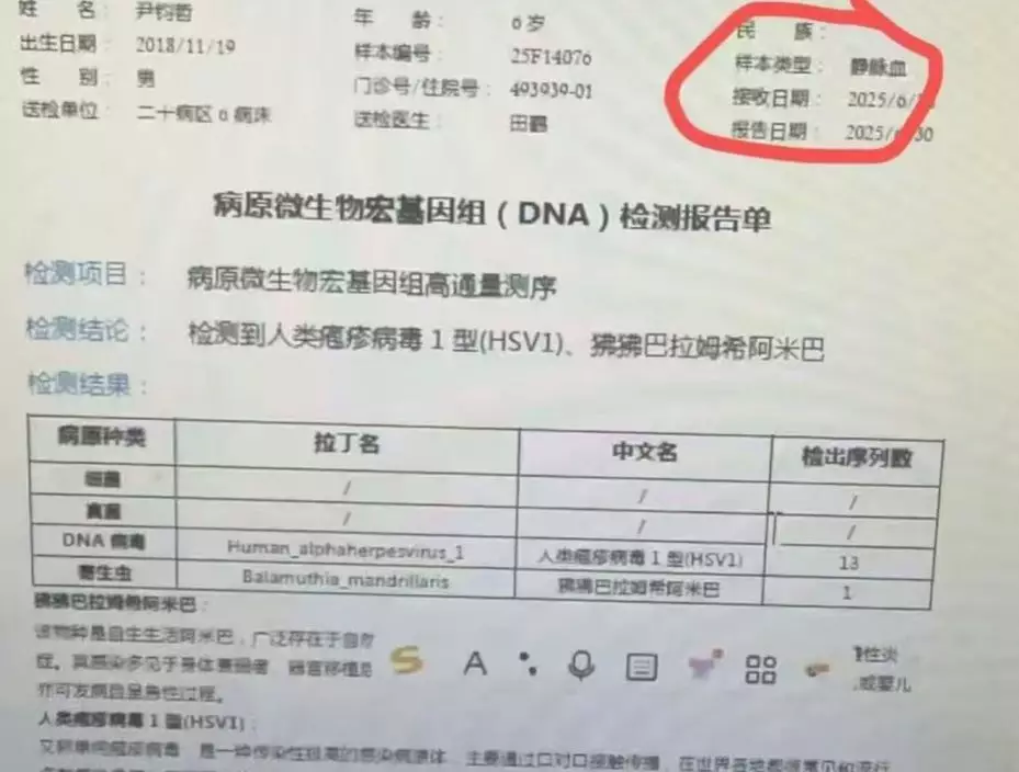 綜合內媒報道,內地一名媽媽今年6月在社交平台發帖指出,年僅6歲的兒子君君在上海醫院檢查出罕見「狒狒巴拉姆希阿米巴原蟲」(俗稱「食腦蟲」)。據介紹,狒狒巴拉姆希阿米巴導致的中樞神經系統感染病情十分兇險,病死率高達98%。目前還沒有明確有效的治療方法。