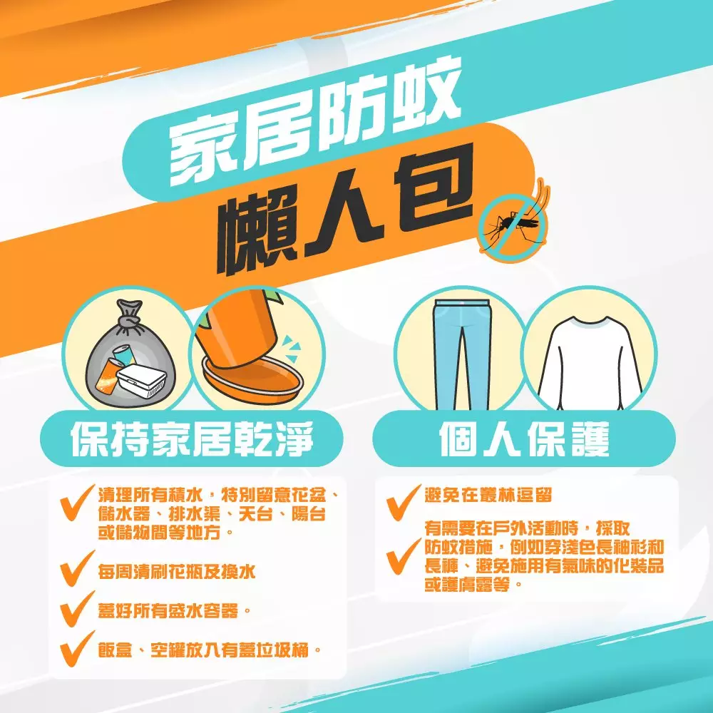 為防範基孔肯雅熱等蚊傳染病,食環署在社交網頁推出「家居防蚊懶人包」,呼籲市民從家居衞生著手,杜絕蚊蟲滋生源頭。