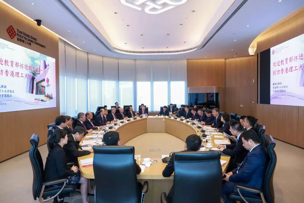 國家教育部部長懷進鵬星期三(8月13日)率團到訪香港理工大學(理大),與理大領導層及科研人員深入交流,了解大學最新的創新科研工作及成果,尤其在醫學、健康及人工智能賦能醫療技術創新等前沿領域的突破性成果。