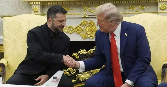 澤連斯基(左)與德國總理默茨(右)握手。AP圖片