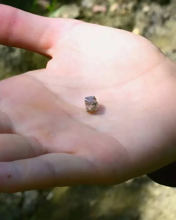 女子赴鑽石公園尋寶挖到2.3克拉白鑽,估市值達2.7萬美元。FB圖片