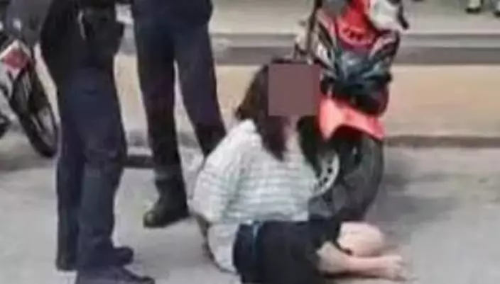 被捕時,她雙手被上銬、坐在地上,不斷大喊「我討厭馬來西亞」。網絡圖片