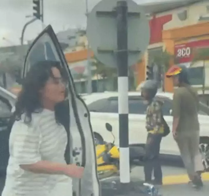 從多段網上影片可見,事發時一輛汽車與電單車發生碰撞,電單車被撞倒在地,汽車女司機其後持刀攻擊電單車司機,造成對方受傷流血。