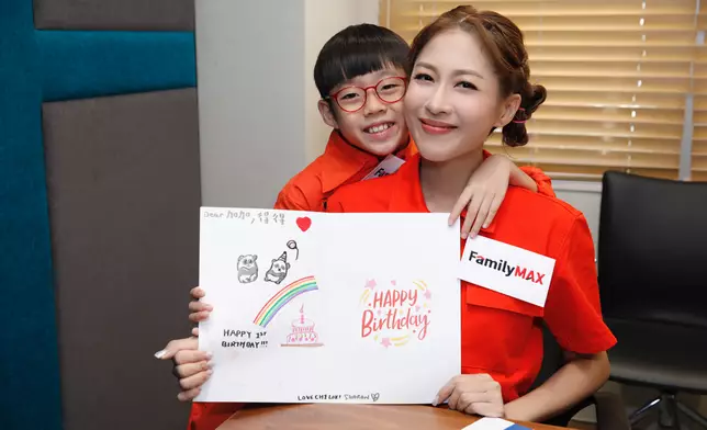 在保育小課堂中,陳敏之與囝囝不僅學會了大熊貓知識,而透過中銀香港FamilyMAX安排的不同環節,更讓保育與理財知識巧妙地結合,為未來多元發展種下美好的種子。活動接近尾聲時,囝囝更特別取出一早預備,以「『熊』抱一歲為主題而親手設計且充滿趣味的巨型生日卡,送給兩位壽星—「加加」和「得得」。身為媽媽的陳敏之自豪地道:「這張生日卡盛載了囝囝的童真與愛心,比任何禮物都來得珍貴,希望『加加』和『得得』在大家的祝福下,永遠健康快樂!」。