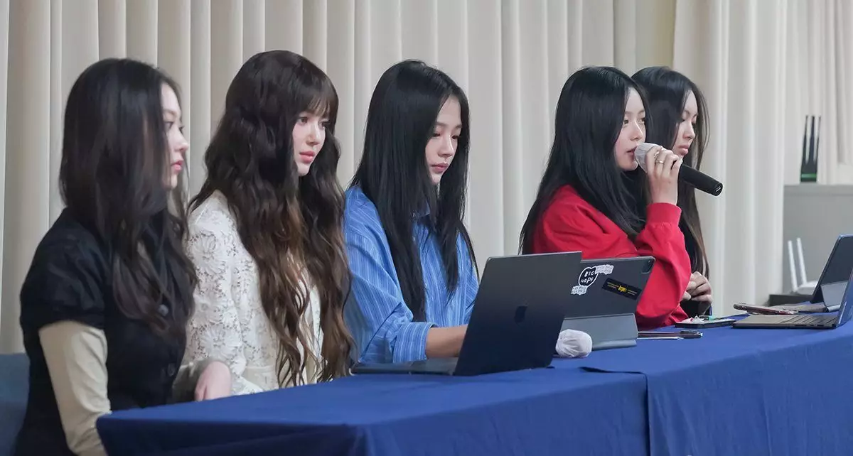 NewJeans五位成員在2024年11月28日召開緊急記者會單方面宣布解除專屬合約。網上圖片