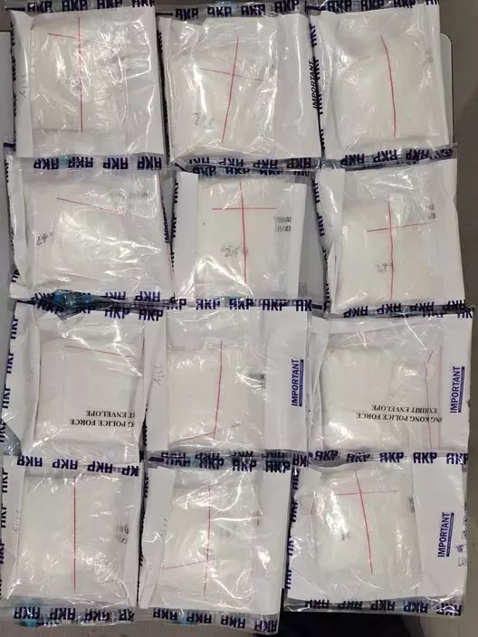行動中,人員在該大廈的平台截查一名形跡可疑的男子,並在該男子身上搜出約500克懷疑氯胺酮,其後於男子住所內搜獲共約5.8公斤懷疑氯胺酮、共約4.9公升的懷疑依托咪酯及一批懷疑毒品包裝工具,包括電子磅及封口機等。行動中檢獲的毒品總市值超過三百萬元。人員亦在該單內搜出一枝伸縮棍。