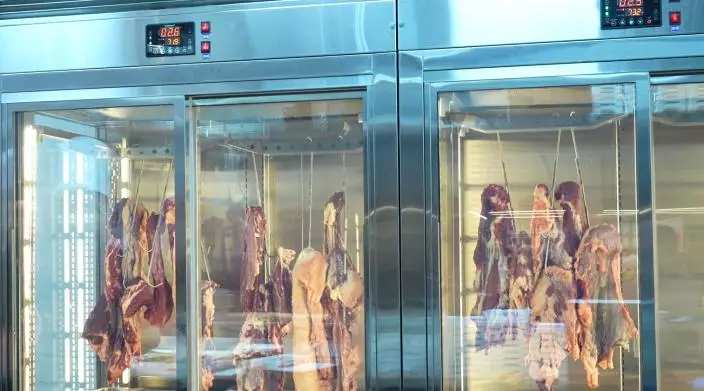 品牌專門設計的定制冷藏設備,精確控制溫度和濕度,保證牛肉的新鮮度和口感。(巴士的報記者攝)