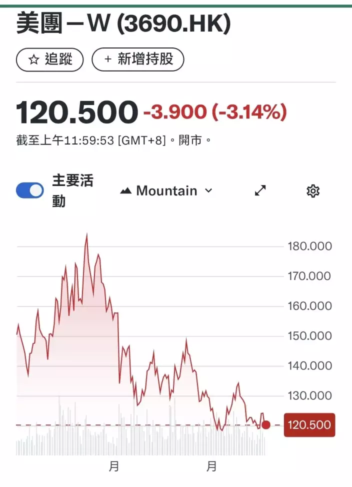 你看京東和美團的股價,就知市場的評價,它們都在今年以來的低位橫行,隨時有向下突破的風險,特別是京東更弱,有貨見它穿位向下,就要止蝕。唯有阿里走勢較佳,突破了早前橫行的高位121元,周四上過125.2元近期高位,周五回吐,若未來向下不跌穿115元,有機會反覆向上,市場在觀望這場外賣大戰,誰是最終贏家。