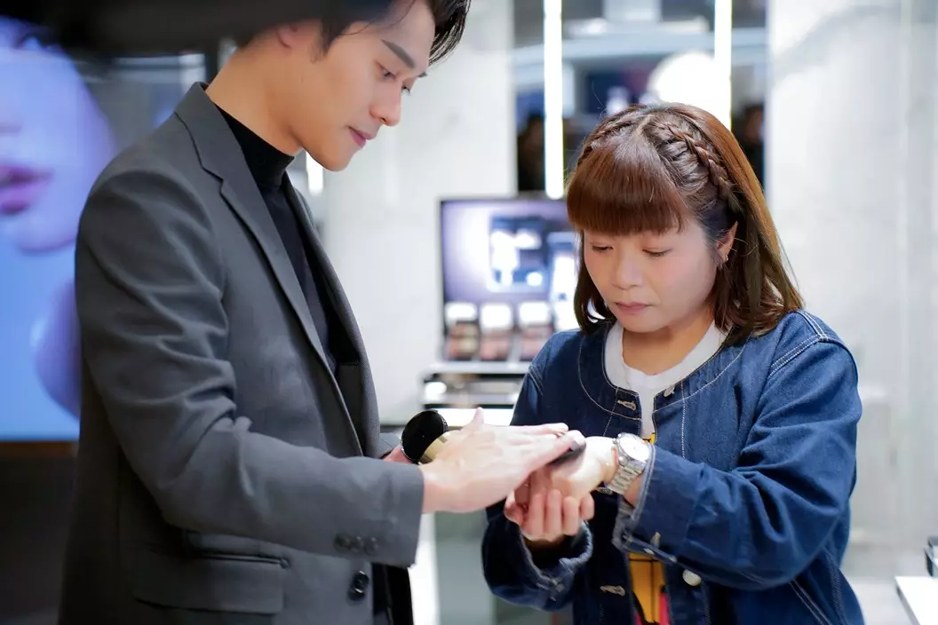 經過SKECHERS時,她發現門口掛着自己代言的巨型海報,即興走入店內選購,一邊試穿一邊大讚:「這雙鞋真的很舒適!」