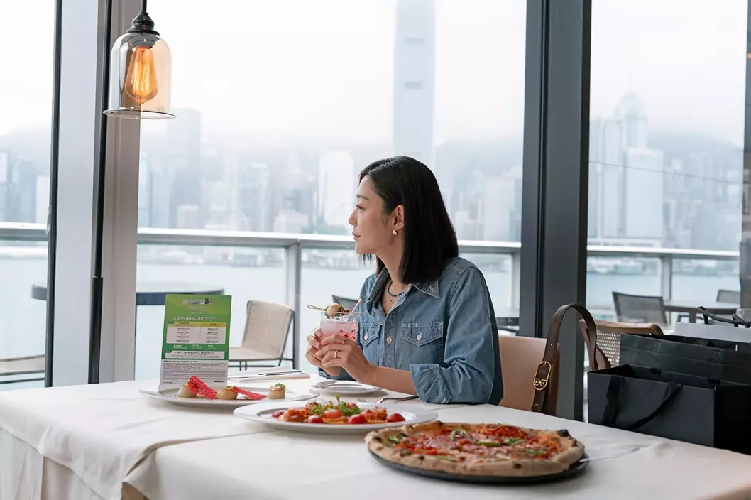 最後,她來到意大利餐廳Paper Moon,一邊享受維港景致,一邊享用飲品