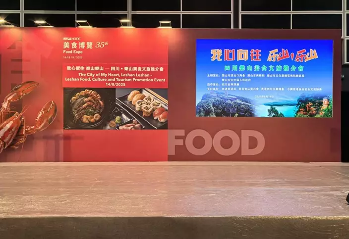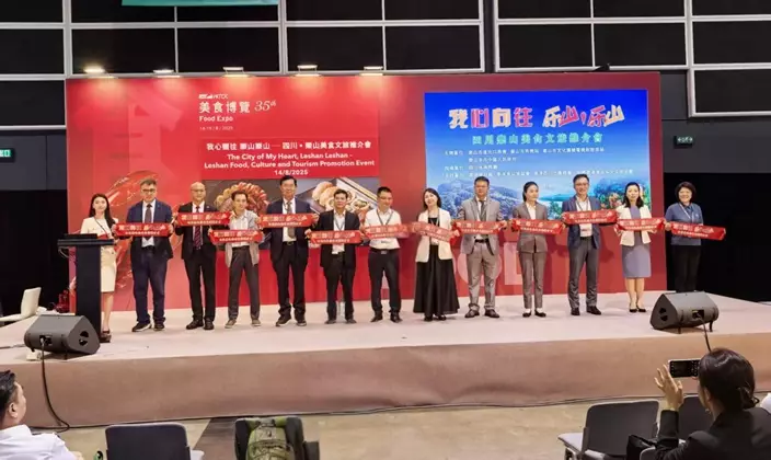 「我心向往 樂山樂山」主題詞在射燈映照下熠熠生輝,紅綢落處,「佛味相融」的嶄新篇章就此開啟。香港貿發局成都代表楊健致辭表示,香港作為全球旅遊、美食之都,是樂山展示雙遺產魅力與地道風味的理想平台。讓我們攜手把樂山故事傳遍香江,傳遍世界!