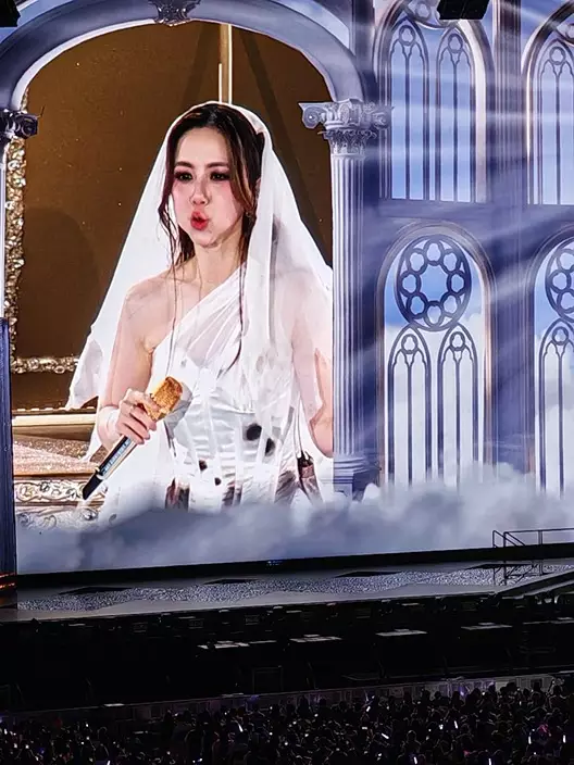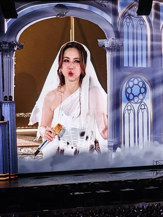 隨後她換上一襲白色晚禮服,宛如童話中的公主。G.E.M.為氹在場粉絲,更於台上重現她的招牌動作——「金魚嘴」,全場即刻歡呼聲雷動,氣氛high到爆!