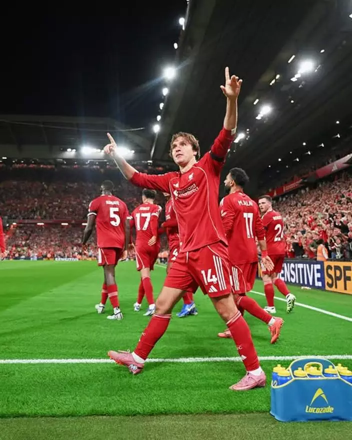 英超利物浦4:2主場挫般尼茅夫。FB圖片@Liverpool FC