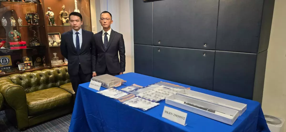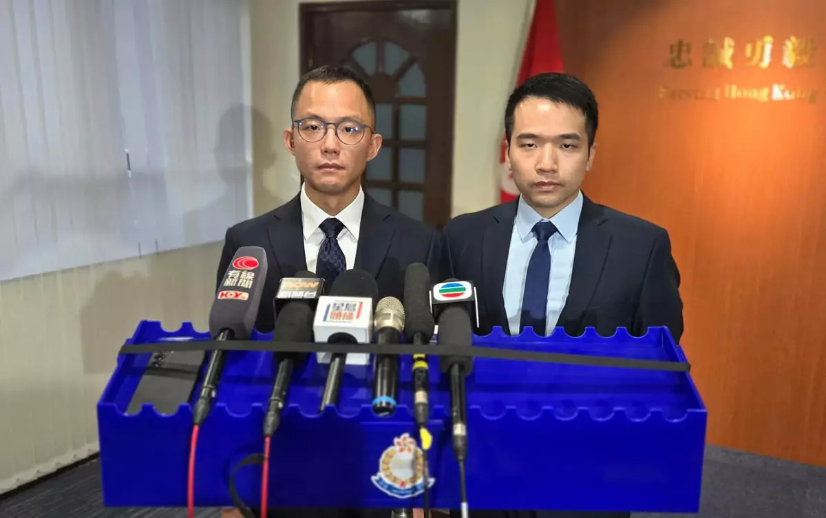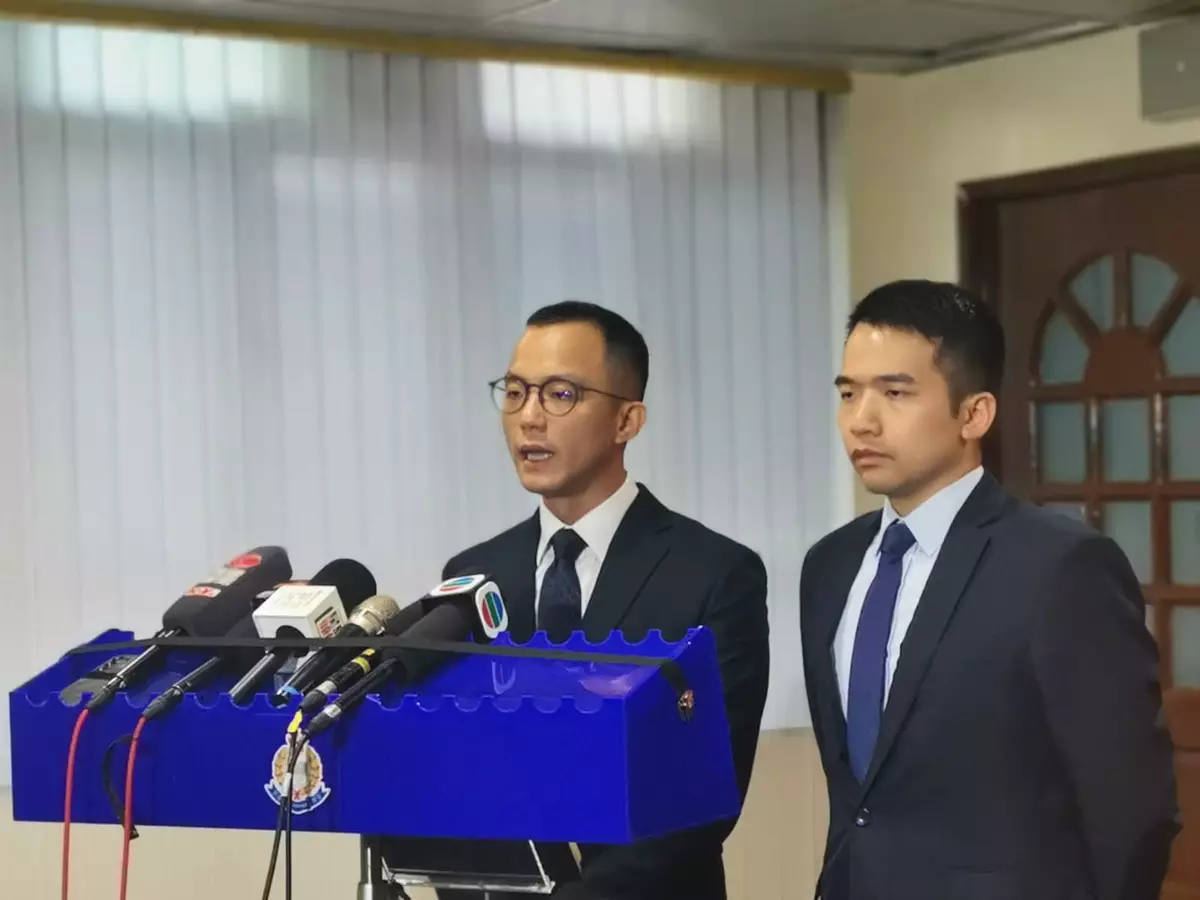 旺角警區刑事總督察羅程瀚(左)及旺角警區調查隊第九隊案件主管洪傑良(右)向傳媒簡報案情。