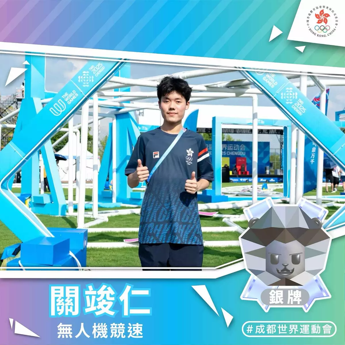 關竣仁在「無人機競速賽」項目奪得銀牌。港協暨奧委會FB