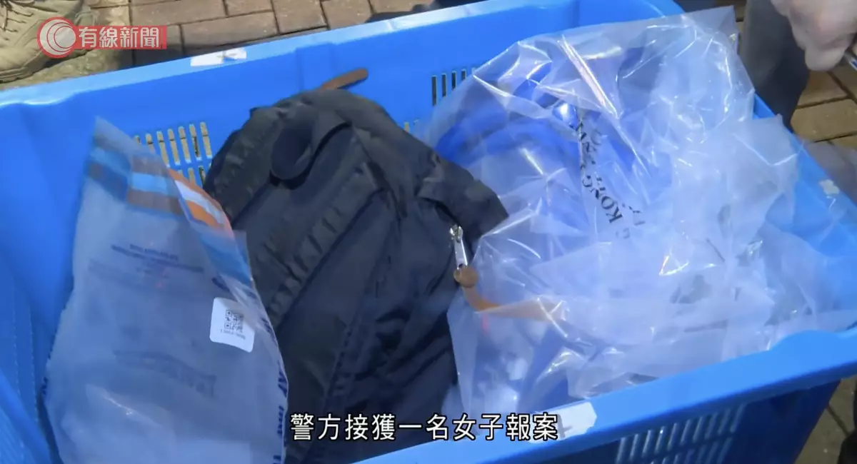 探員其後帶走兩籃證物,包括背包及膠袋等。