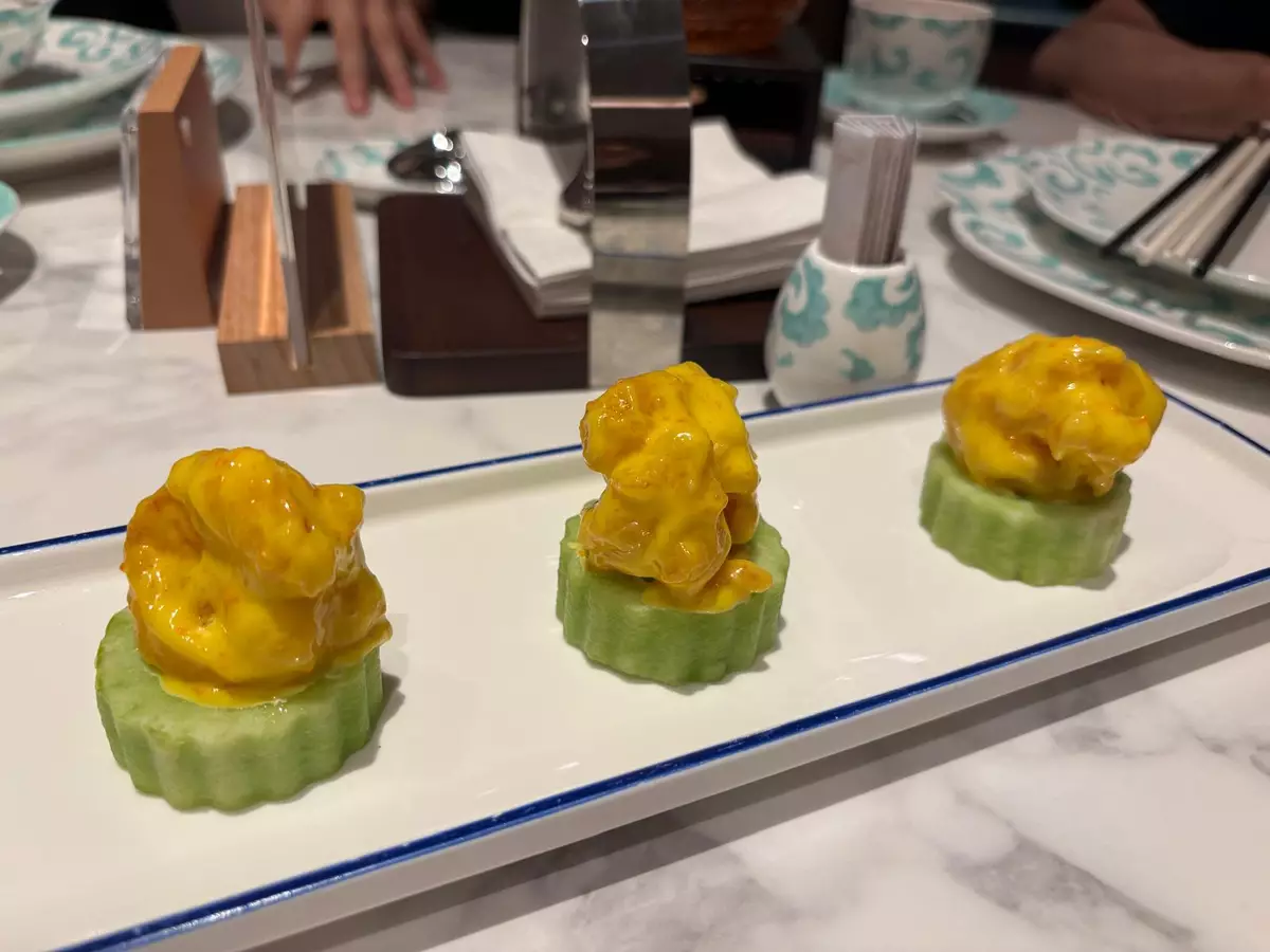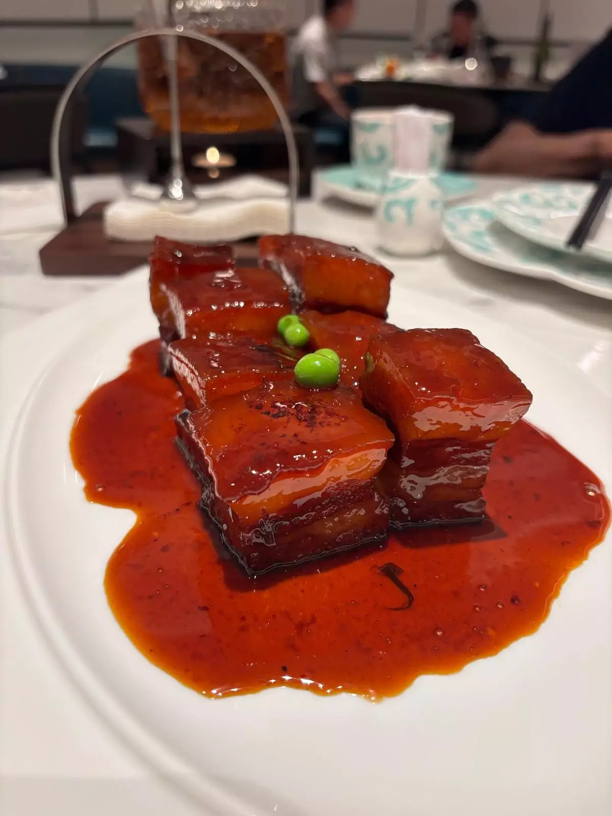 盥洗完下酒店,粵餐廳晚飯。五人五餸,味味精彩。東坡肉,大蝦瓜,咕咾肉,平均每人,壹百二拾元人仔。上美團登記,重有九折,又送甜品。