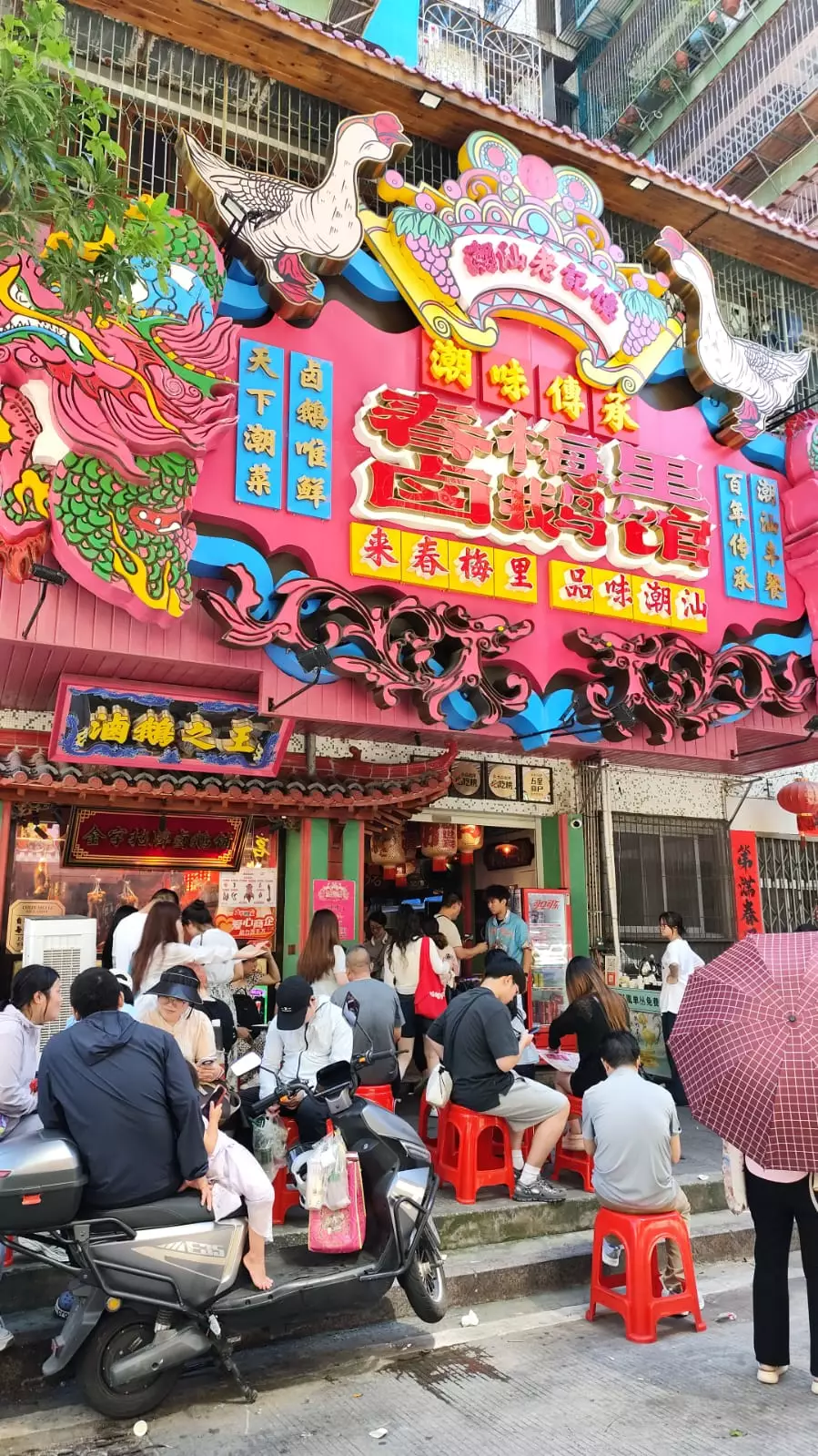 翌日早餐,都好正正㗎。食完早餐,領隊真媽,告知同行隊友,自由活動二小時,十二時大堂,網約車出發。這個美食團,出發汕頭,吃春梅里潮州菜。來潮州吃潮菜,不吃春梅里,猶如沒吃過,潮汕菜㗎。坐了成個鐘,才到這間春店,下到車,見到竟然關了門,望住閘門貼紙,原來搬去了後街,擴張新店。三十多度,行三步都標汗,一行五人,行到去後街,望見新春店。人山人海,好似當年,黃絲圍城咁款,嚇到我問,「要等幾耐,太陽猛,好易煎濃㗎。」我同女門神講,「我們從香港來,專誠幫襯㗎,吃不到你間,潮州名店,我們好失望呀。」女門神細細聲請,「好多人等不到會走,你們等一個鐘,包你們可以食到啩。」真是如女知客講,慢慢好多客,等不到就自自然然離開。