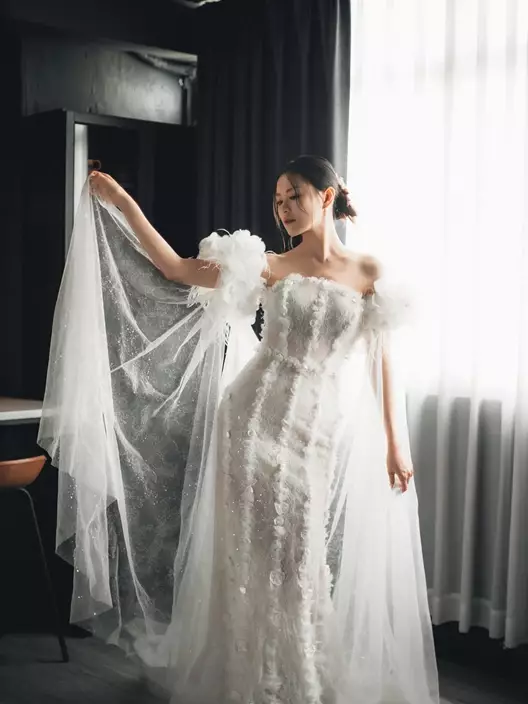 莊易羚平日亦不時在IG分享日常點滴,近日她就晒出一輯唯美婚紗寫真,相中她穿著露肩貼身婚紗,大騷凹凸有致的身材,加上手臂的透紗設計,令整個造型充滿仙氣,同時將她充滿魅力的另一面展現出來,網民都睇到心心眼,紛紛留言大讚:「再一次電暈了」、「又酷又温柔,靚到我暈啦!超有feel!」