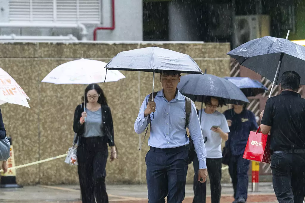天文台預測星期一雨勢有時頗大,稍後風勢減弱。AP資料圖片