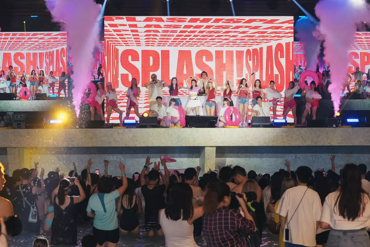 壓軸表演的MC以型爆造型登場,加上charm爆笑容,全場「賦二代」隨即瘋狂尖叫!MC熱情地跟Fans們打招呼後,以招牌靚聲送上金曲《記憶棉》,當他準備獻唱《小心地滑》前更笑說:「今次是我首次在水上舞台表演,很高興可以跟大家一起狂歡兼消暑,最緊要小心地滑!我自己也會小心地滑,大家也知道我有多論盡!」