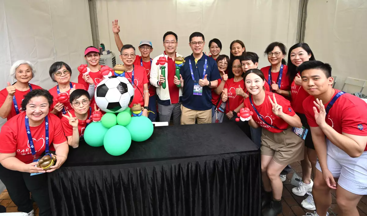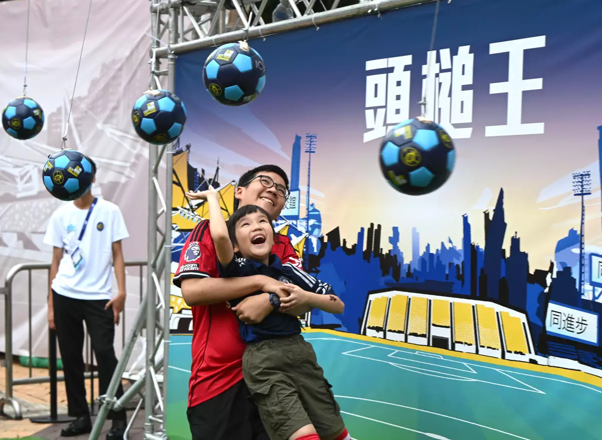 場外同樣精彩,有曼聯及馬會設置的攤位遊戲,讓市民投入運動樂趣。體育專員蔡健斌在馬會對外事務主管鄭琪陪同下,亦來到馬會義工隊扭氣球攤位參觀。