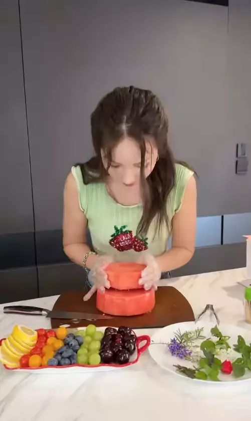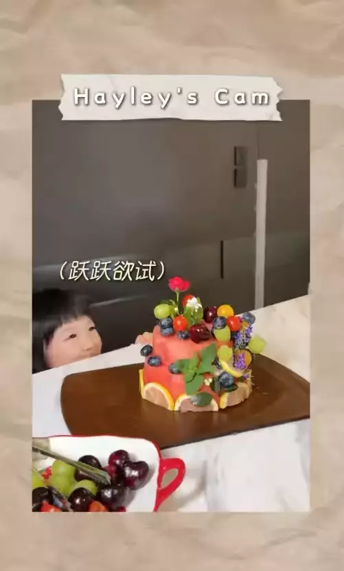 李亞男在IG分享製作「西瓜蛋糕」的影片,可見「西瓜蛋糕」顧名思義就是用西瓜做「蛋糕胚」,再配上不同的水果及李亞男家自己種的鮮花作裝飾,相當有心思!成品色彩繽紛好吸睛,連李亞男細女Hayley都被吸引,蠢蠢欲動想偷食!除了蛋糕,李亞男還準備了一份小禮送給Jared,並表示:「Happy birthday Jared , hope you like the watermelon cake.(生日快樂Jared,希望你喜歡西瓜蛋糕。)」