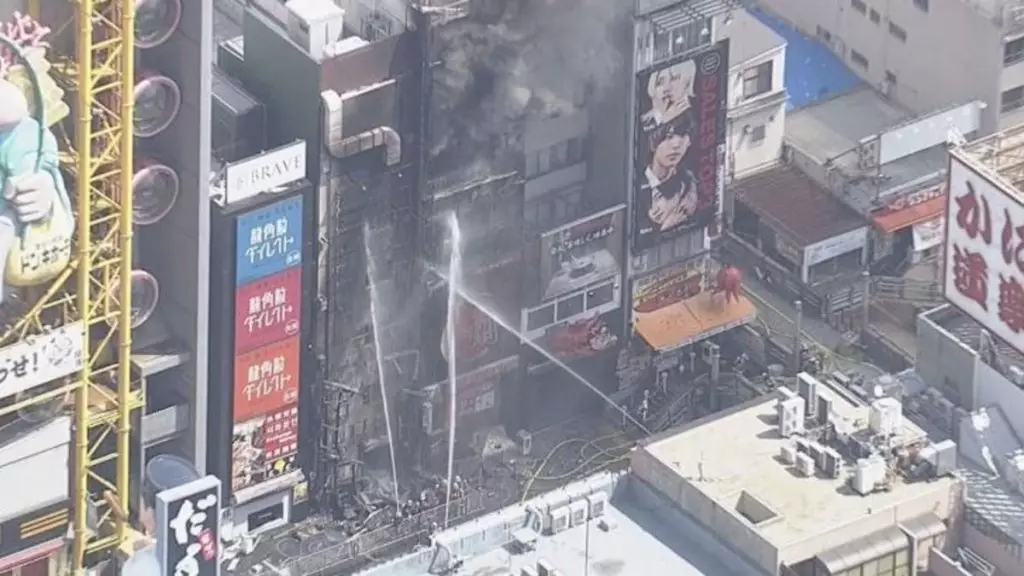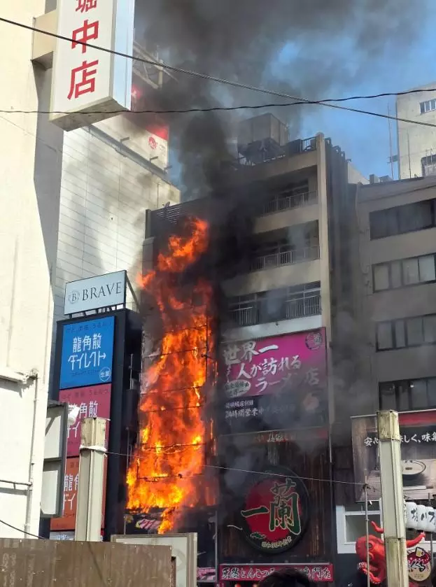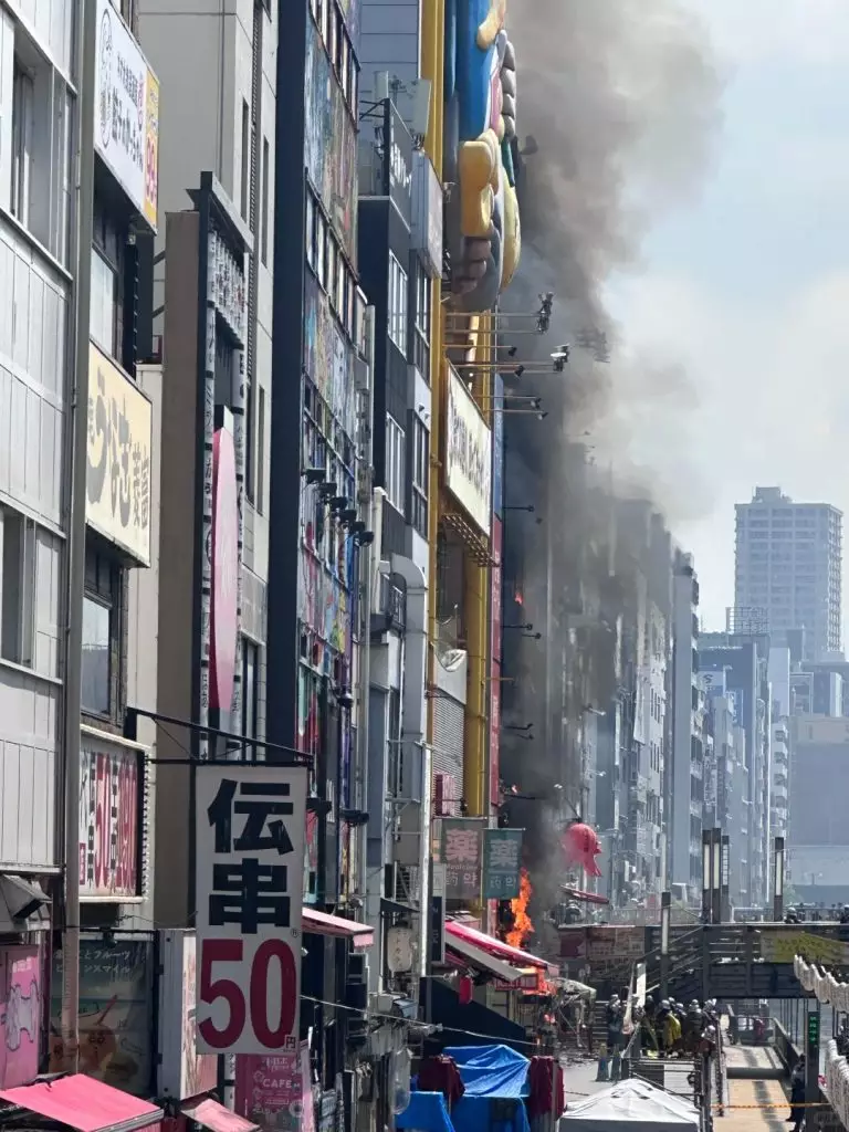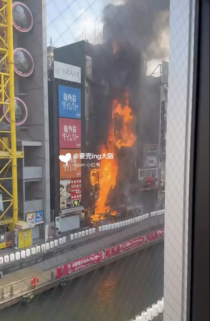事發在道頓堀,新華社引述日本放送協會報道,起火的是一座7層高建築物的1樓,當局已出動30多部消防車及一架直升機協助救火。