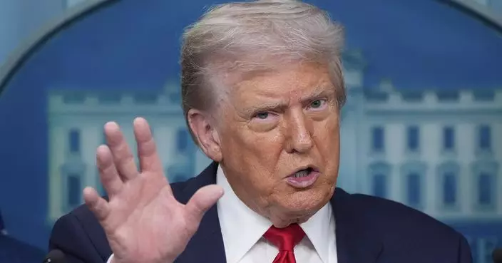 控方舉例指,黎智英請求特朗普制裁已構成犯罪,不需要特朗普說他收到請求。 AP圖片