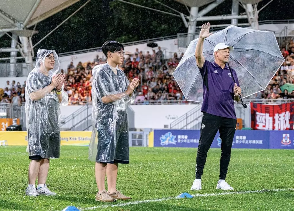 8月17日,儘管大雨傾盆,超過4,500名球迷仍擠入旺角大球場,迎接曼聯U16與中國香港U16代表隊的對決。曼聯名宿舒米高賽前向球迷揮手致意,引發曼聯球迷區的熱烈歡呼。場外,香港賽馬會特別為球迷設置攤位遊戲,為觀眾帶來額外樂趣。