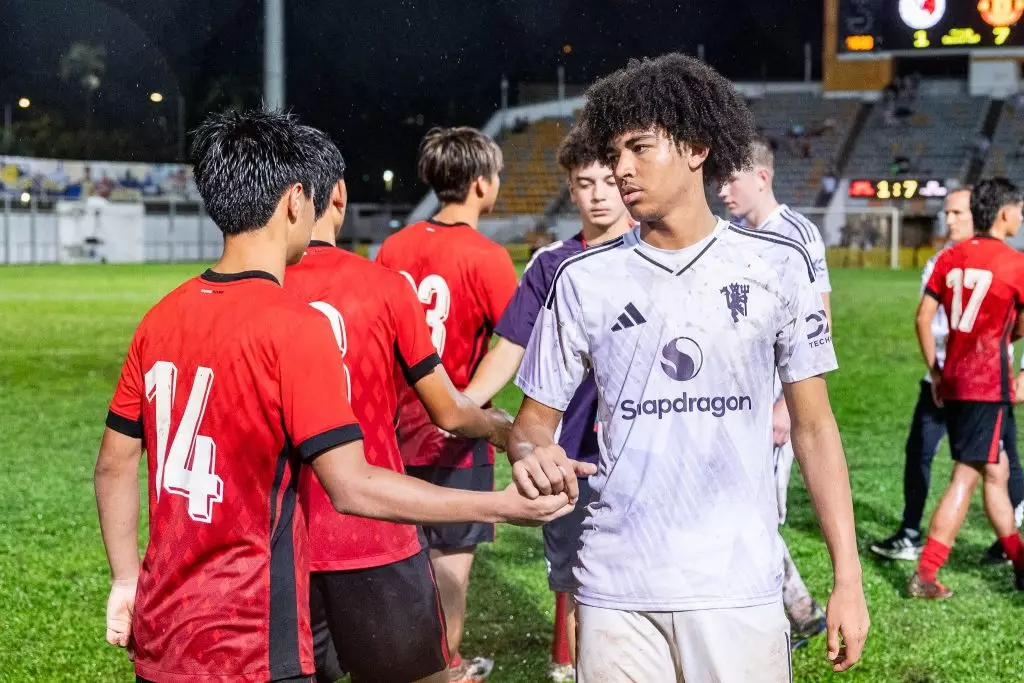 場上,曼聯U16今仗展現了強大的攻擊力。甘倫在第13分鐘首開紀錄,並在比賽中上演帽子戲法,最終榮膺最佳球員獎。艾菲占士在第16分鐘禁區外勁射破網,助曼聯U16上半場以2:0領先。下半場,曼聯U16繼續擴大優勢,賈斯柏、莊姆和法萊爾接連進球。儘管港隊U16落後,他們從未放棄,第84分鐘,童祈樂左路長驅直入,射入一記精彩入球,為港隊「破蛋」,引爆全場歡呼。最終,曼聯U16以7:1大勝,但港隊的鬥志贏得了全場觀眾的掌聲及尊重。