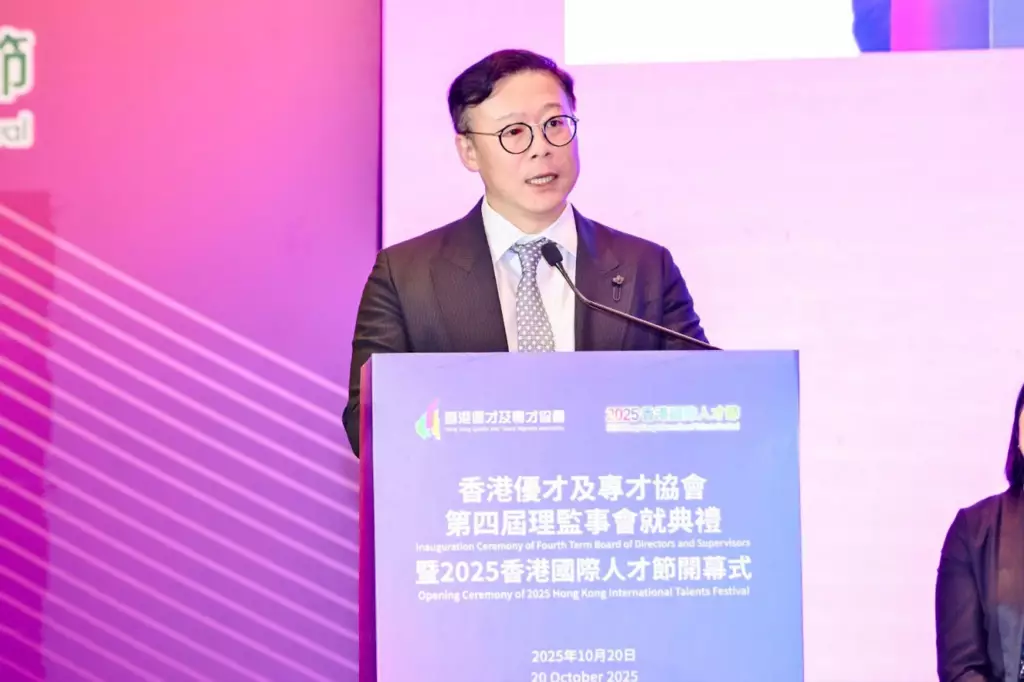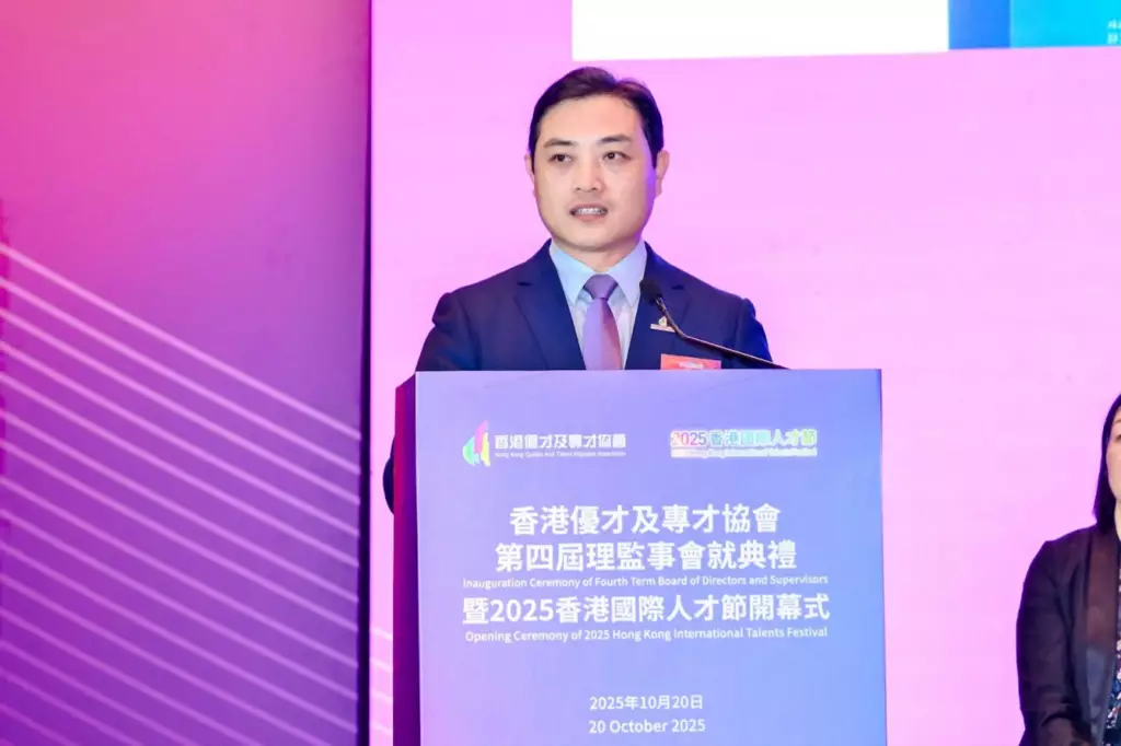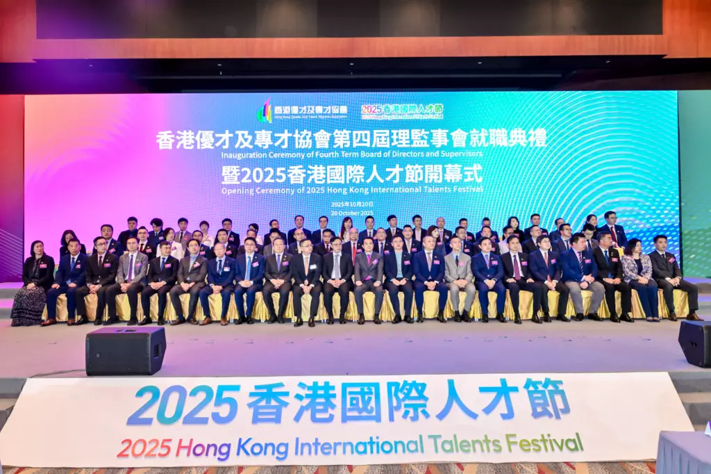 10月20日晚,香港優才及專才協會第四屆理監事會就職典禮暨2025香港國際人才節開幕式於香港灣仔會議展覽中心成功舉辦。大會供圖