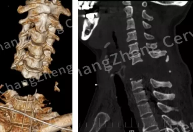 CT三維重建提示頸椎離斷部位情況嚴重複雜。醫院圖片