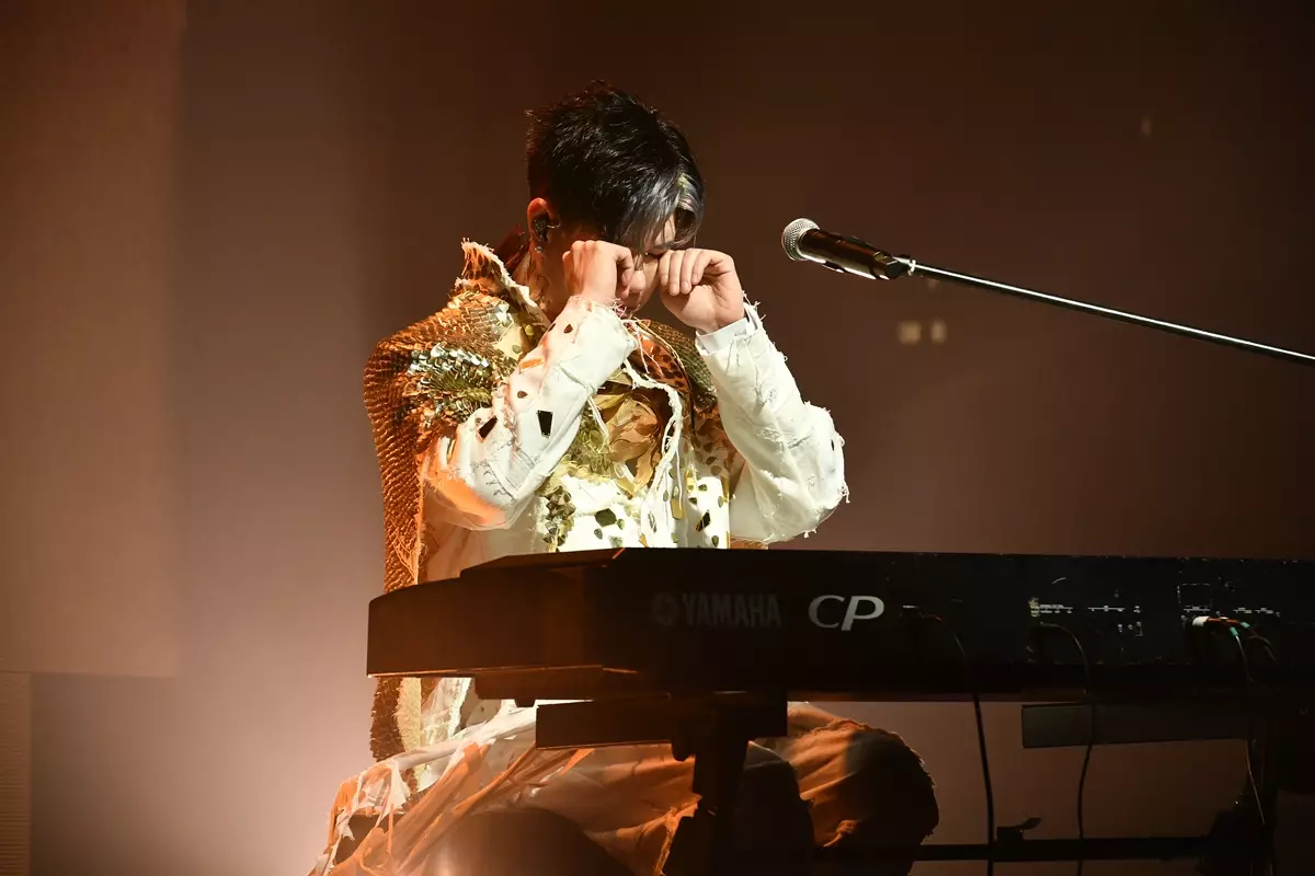 唱到中段一度哽咽。
