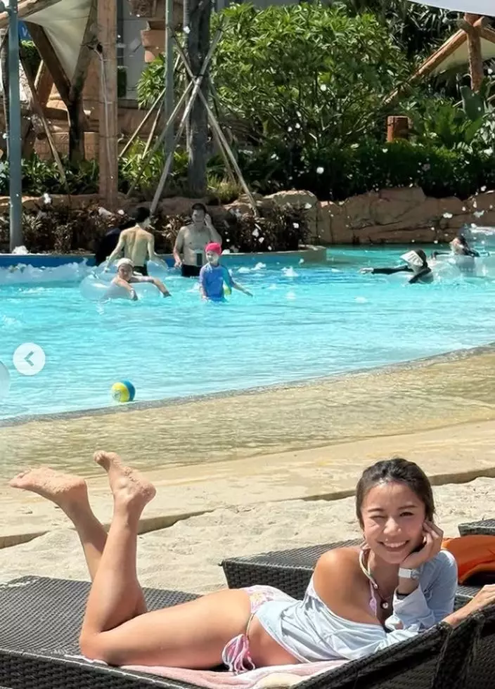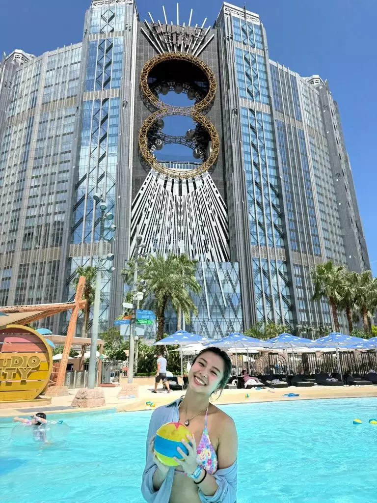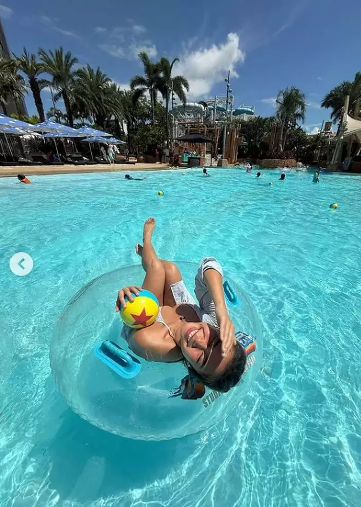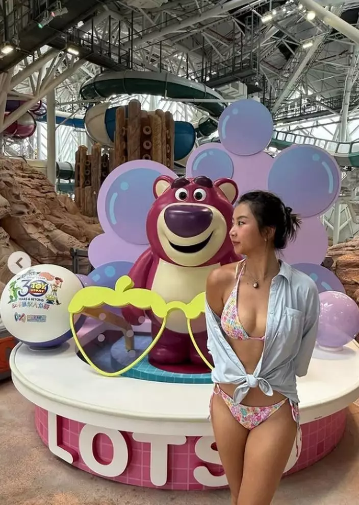 何泳芍(Honey)近日去到澳門玩水上樂園。