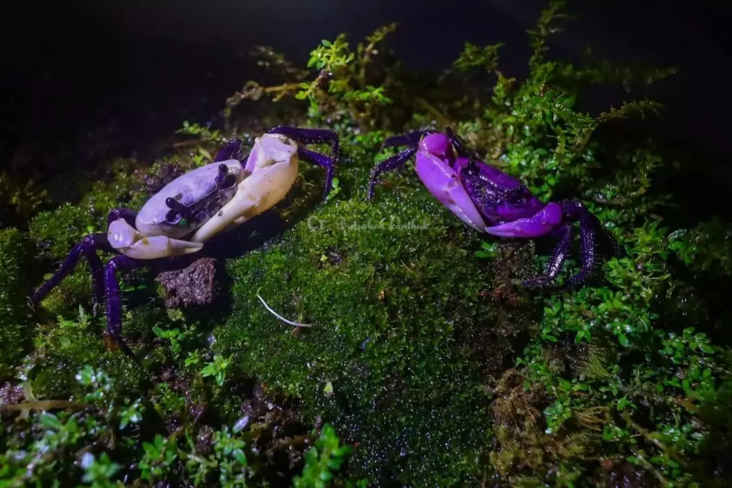 泰國國家公園現變異「公主蟹」,紫白色甲殼奇特外型似外星生物。FB圖片
