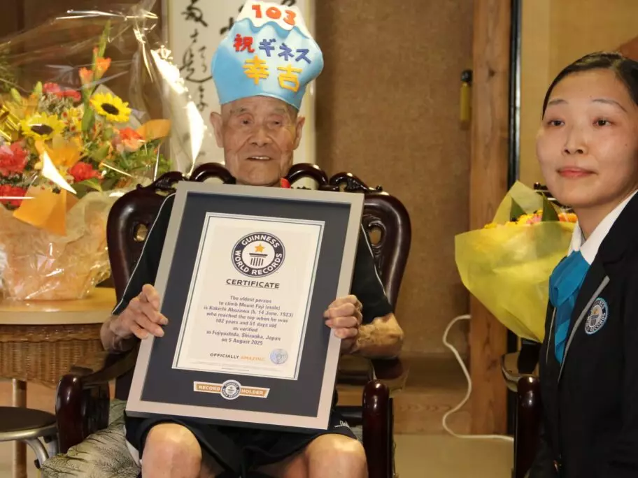 綜合日媒報導,日本一名102歲又51日的高齡登山家「阿久澤國一」日前成功登上海拔3776米的富士山,獲健力士世界紀錄認證為「史上最年長登頂富士山的男性」。這一壯舉不僅刷新歷史紀錄,也書寫一個高齡人士挑戰極限、戰勝病痛的傳奇故事。