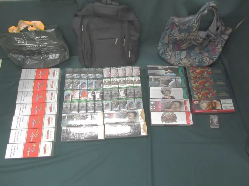上月27日,這名女旅客經落馬洲支綫管制站入境,關員在她攜帶的個人行李內檢獲7400多支未完稅香煙及75克未完稅雪茄,估計市值約30850元,應課稅值約24800元,她再次被捕。