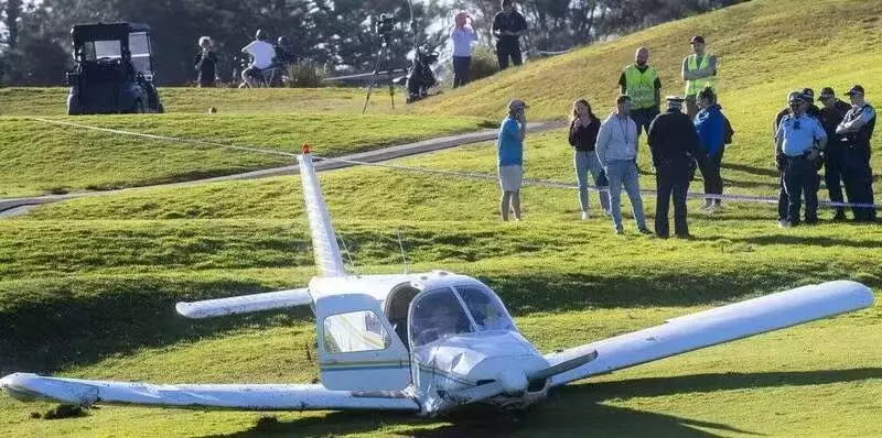 澳洲一架小型飛機飛行途中突然失去動力墮高爾夫球場草皮上傳出巨響,機上2人奇蹟生還。
