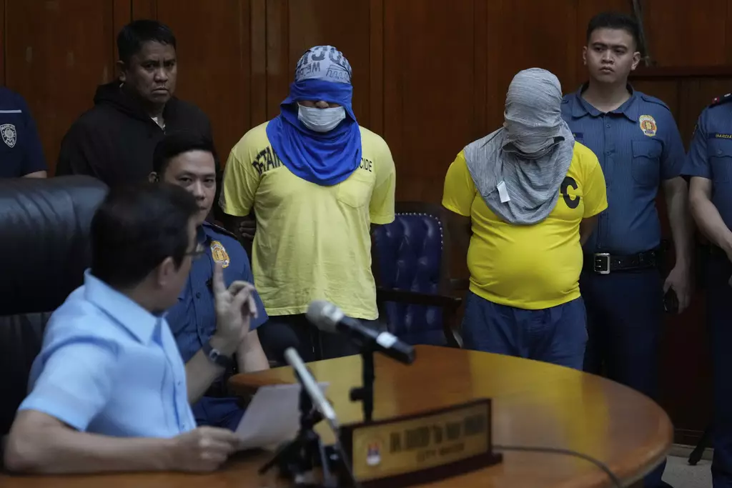 馬尼拉市長指向兩名槍殺日本人案疑犯(黃衣)。AP圖片