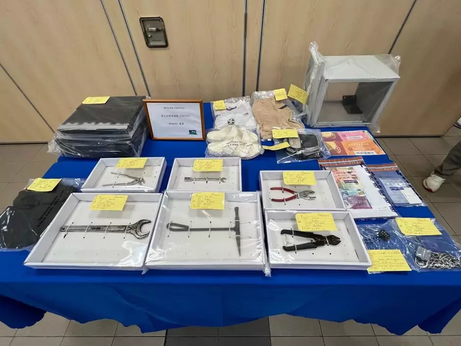 黃大仙警區刑事調查隊第二隊主管溫文健偵緝督察表示,警方於8月14日早上接獲彩虹一間商場地舖餐廳員工報案,指餐廳大門的掛鎖和鐵鏈被破壞,餐廳內收銀處亦被搜掠。經點算後發現,一個裝有現金的保險箱、錢箱及一部平板電腦被盜,總損失約2萬5千港元。警方接報後到場,在餐廳內找到作案工具,並在啟德協調道一帶尋回被盜保險箱及錢箱。