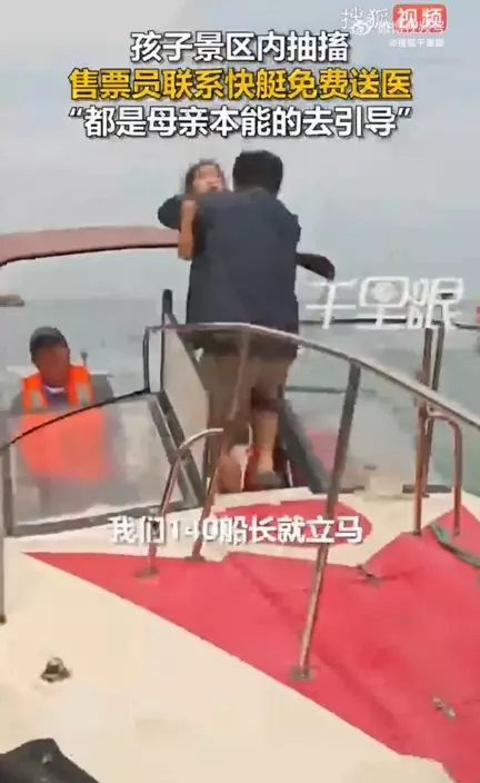 女童景區突發抽搐,碼頭女售票員果斷調快艇開綠色通道送醫。影片截圖