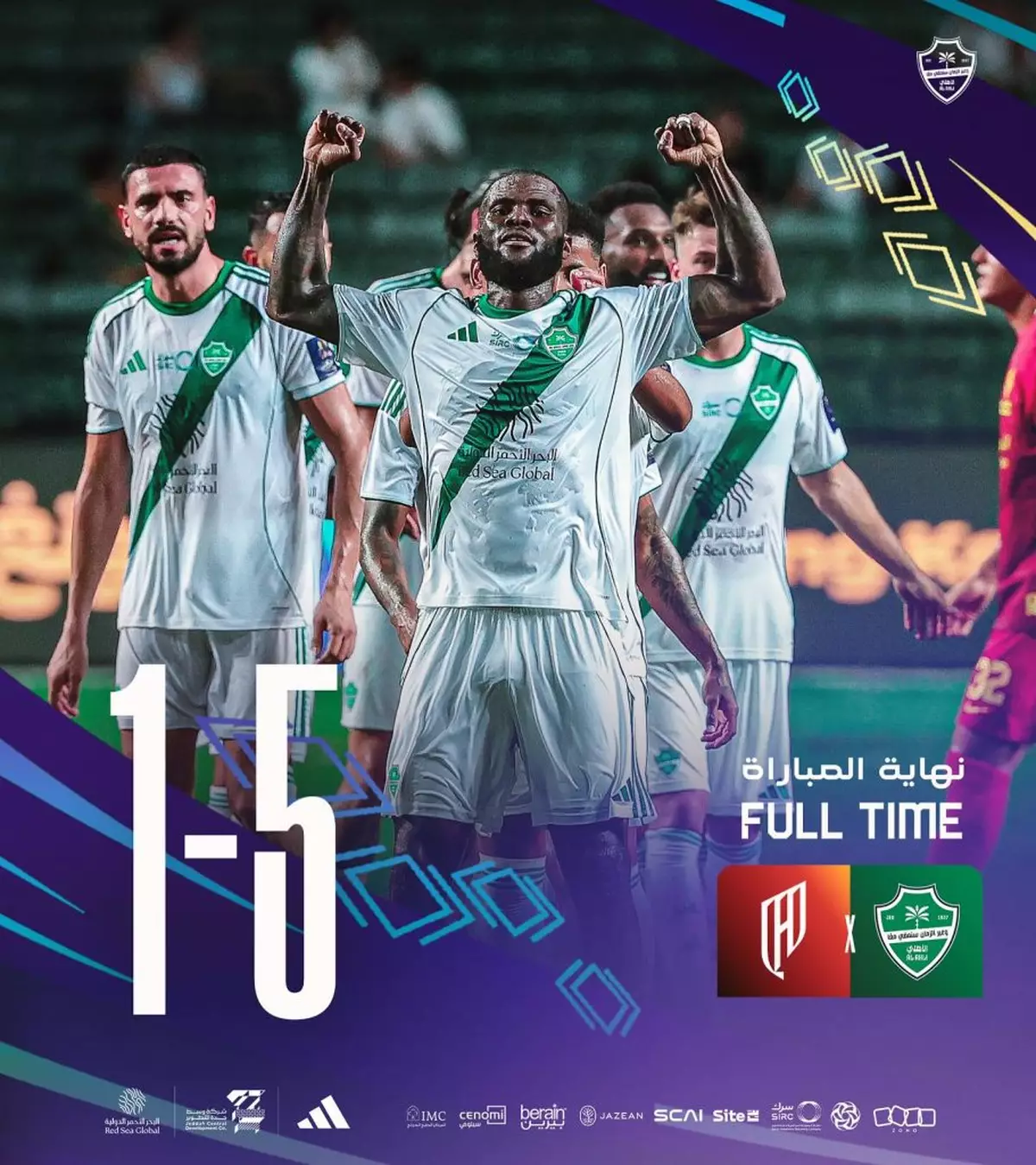 「沙特超級盃」吉達艾阿里5:1擊敗艾卡迪沙,周六與艾納斯爭冠。FB圖片