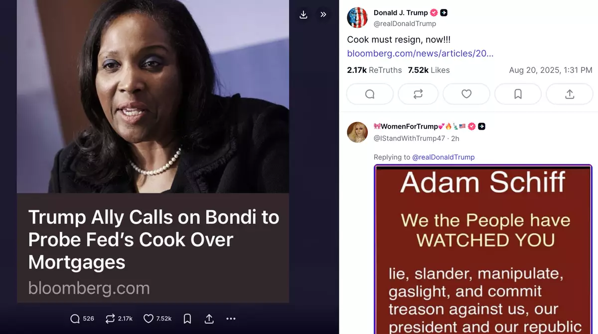 美國聯邦住房金融局(FHFA)局長Bill Pulte較早時在社交平台發文,指控庫克涉嫌按揭貸款欺詐,敦促司法部對她展開調查。
