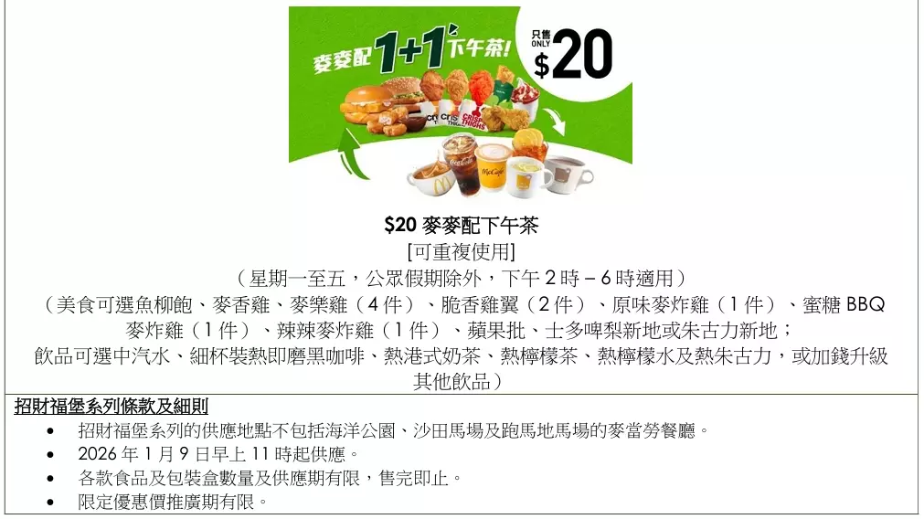 除了現有套餐的價格調整外,麥當勞還將推出5美元(約39港元)的早餐優惠和8美元(約62港元)的巨無霸雞塊特餐,進一步擴大了套餐選擇。
