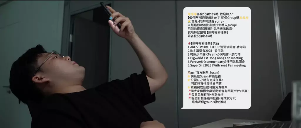 香港海關在社交平台分享影片,提醒市民切勿輕信「幫手收個包裹就有免費演唱會飛」此類陷阱。