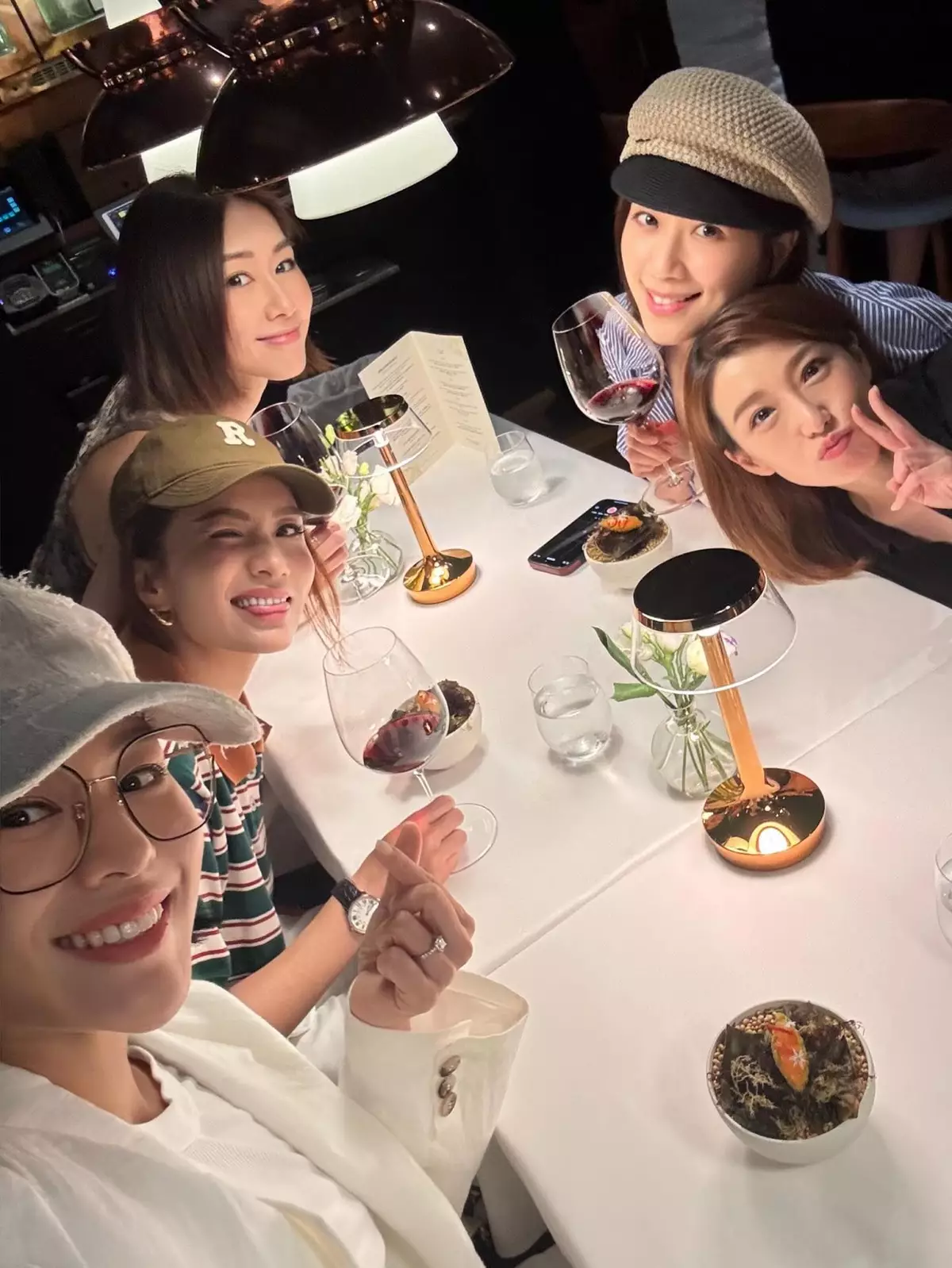 胡定欣在IG晒出合照,並留言:「各自忙,各自做自己鍾意做嘅嘢,各自從中學習得到體驗,回來互相分享,同時又做個聆聽者!希望大家都生活得開心,希望大家都幸福快樂!GIRLS…CHEERS!~」相中可見五人開心歎美食,又小酌一杯,相談甚歡!
