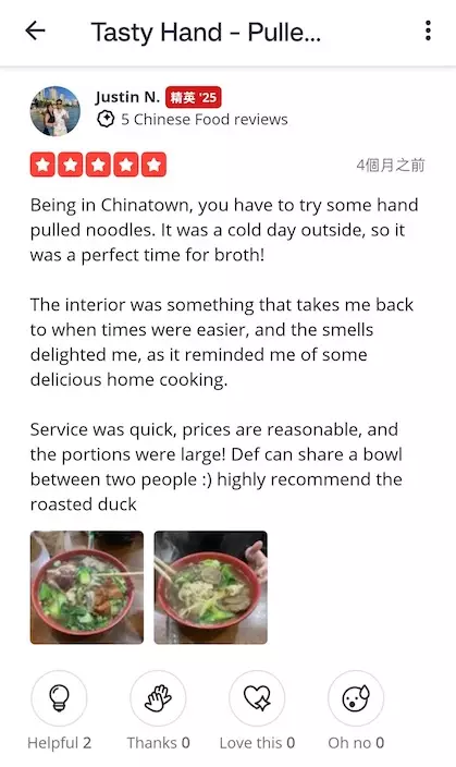 一位外國網友的就餐評價