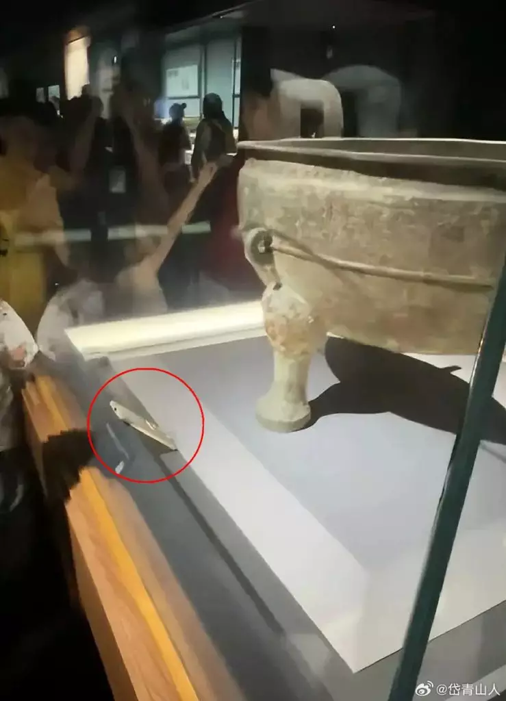 山西博物院青銅器展櫃內驚現智能手機 ,網民熱議「穿越了?」 館方還原背後真相。微博影片截圖