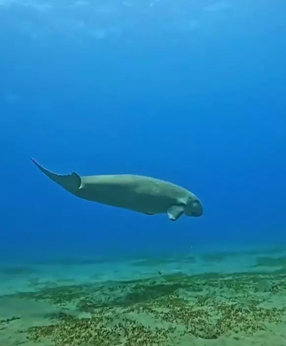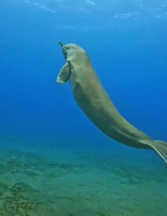 南沙群島驚現「美人魚」, 內地30年來首獲得活體儒艮紀錄。微博圖片